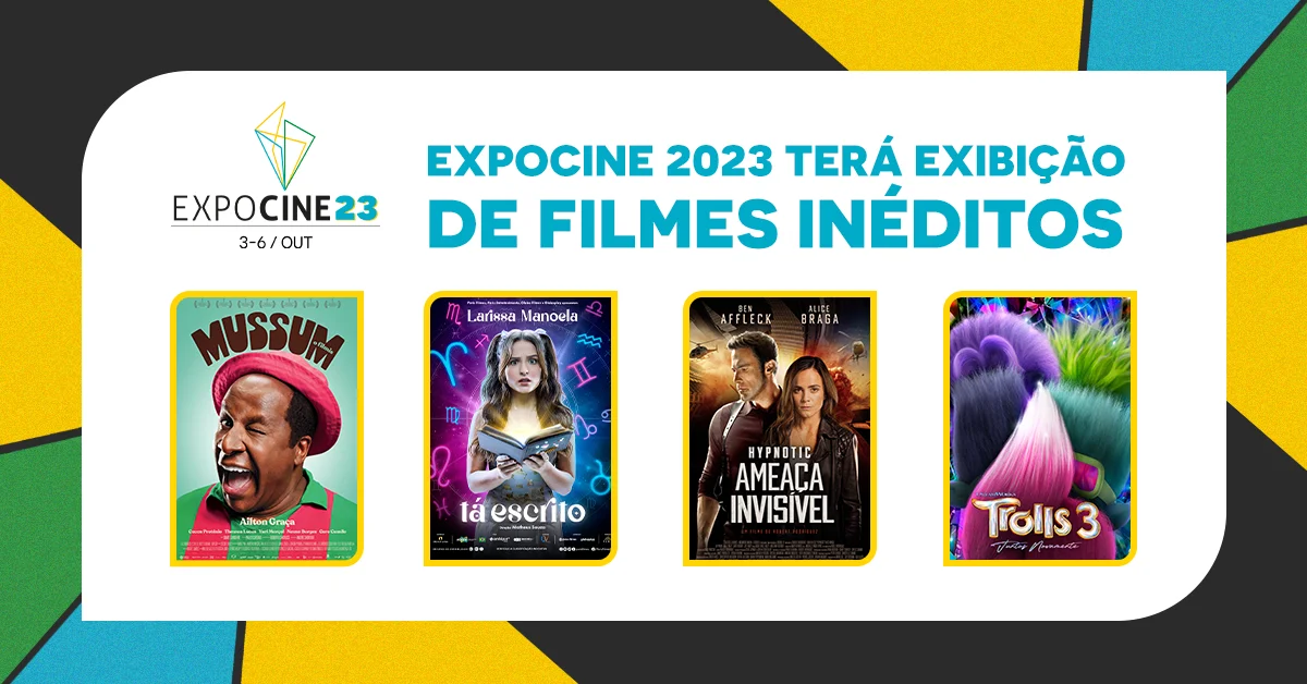 A Expocine, maior convenção de negócios de cinema da América Latina, vai exibir quatro filmes que ainda não chegaram ao circuito comercial dos cinemas. "Trolls 3 – Juntos Novamente", "Tá Escrito", "Mussum, O Filmis" e “Hypnotic – Ameaça Invisível” são apostas de bilheteria para o segundo semestre e farão parte da programação apresentada para exibidores, produtores e distribuidoras de todo o país presentes no evento.