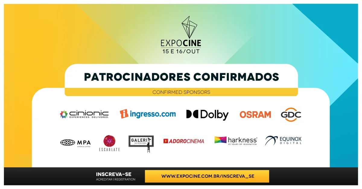 Entre as empresas já confirmadas como patrocinadoras da Expocine 2020 estão: Cinionic Ingresso.com, Dolby, Osram, GDC, MPA, Escarlate, Galeria Distribuidora, AdoroCinema, Equinox Digital e Harkness Screens.